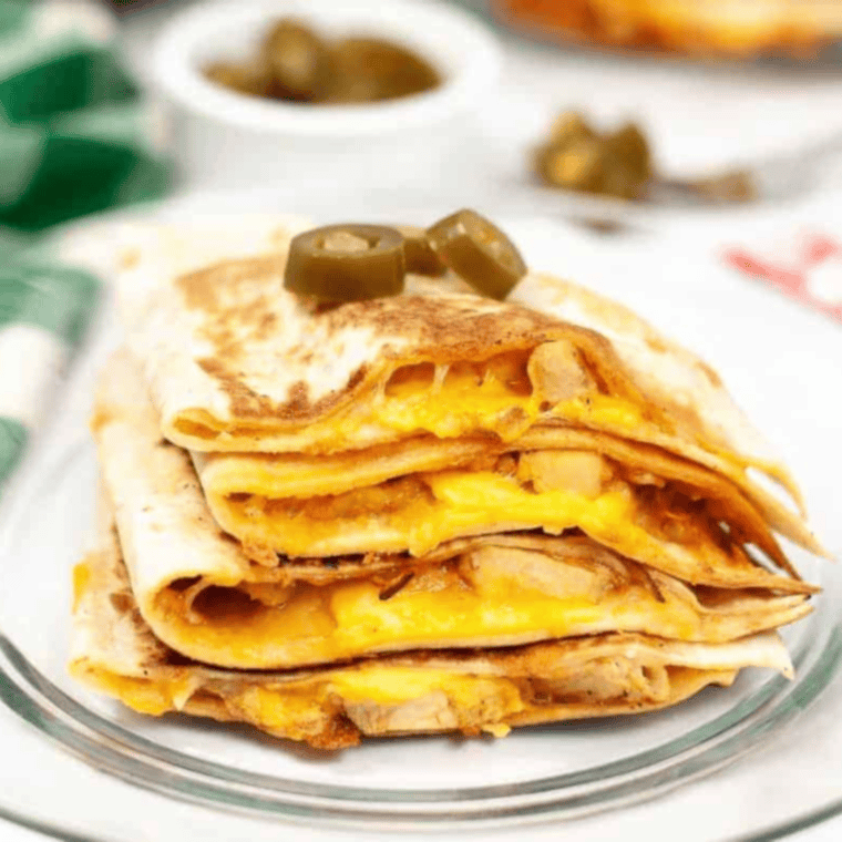 Crispy tortillas filled with melted cheese or a simple meat and cheese combo. Slice into triangles for easy sharing. They’re fast to make and can be customized with favorite fillings. Serve with salsa or sour cream on the side.