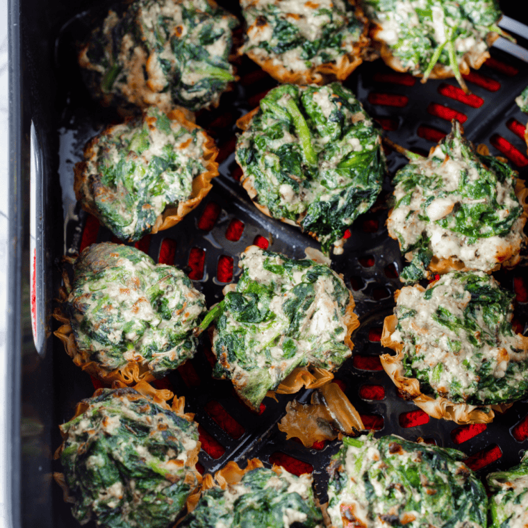 This Easy Air Fryer Spanakopita Recipe brings the classic Greek spinach pie to your kitchen in minutes. Crispy phyllo cups filled with a savory mix of spinach, feta, and herbs make a perfect appetizer, snack, or party treat.