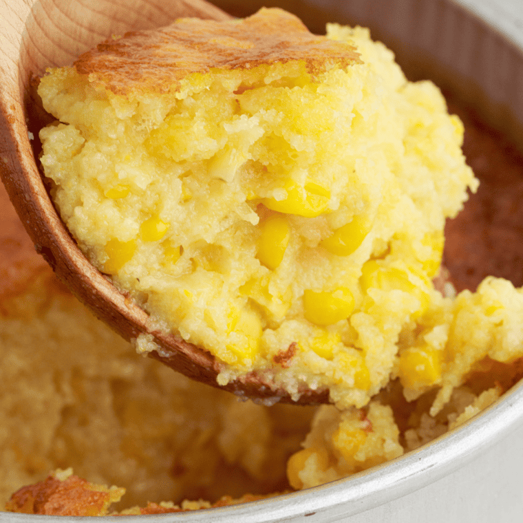 A mix of corn, corn muffin mix, and sour cream comes together in this soft, slightly sweet bake. The air fryer helps create a browned crust while keeping the inside moist. It’s an easy side for barbecue or chili. Top with a little butter or jalapeños.
