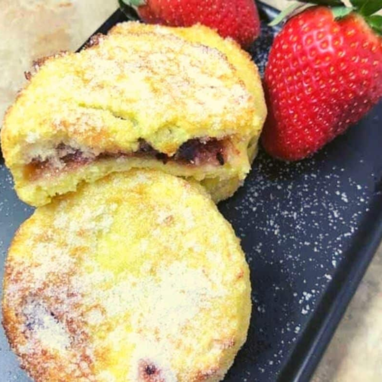 Jam gets sealed inside and lightly caramelizes as it cooks. Each bite is filled with fruity flavor. The outer layer crisps up perfectly. Try with different types of jam.