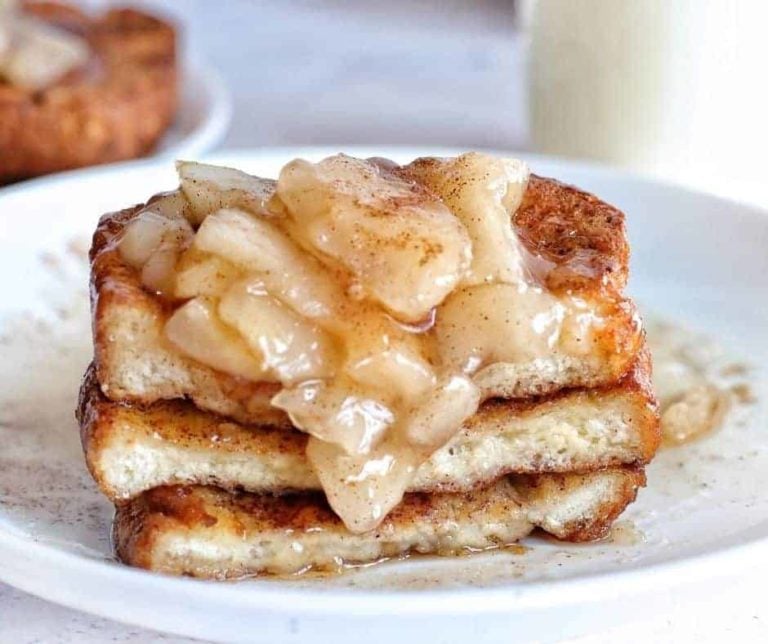 Apple filling adds warm spice and sweetness to this version. As it cooks, the flavors blend into the bread. It’s like dessert for breakfast. Top with cinnamon or extra apple slices.