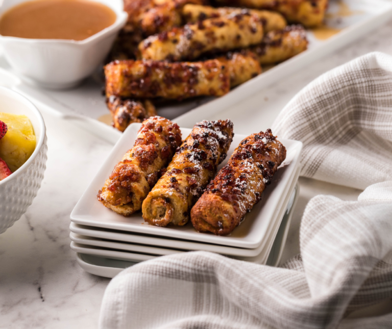 These are filled, rolled, and toasted until golden. The filling options are endless—try Nutella, jam, or cream cheese. They’re fun to eat and easy to dip. Great for brunch or snacks.