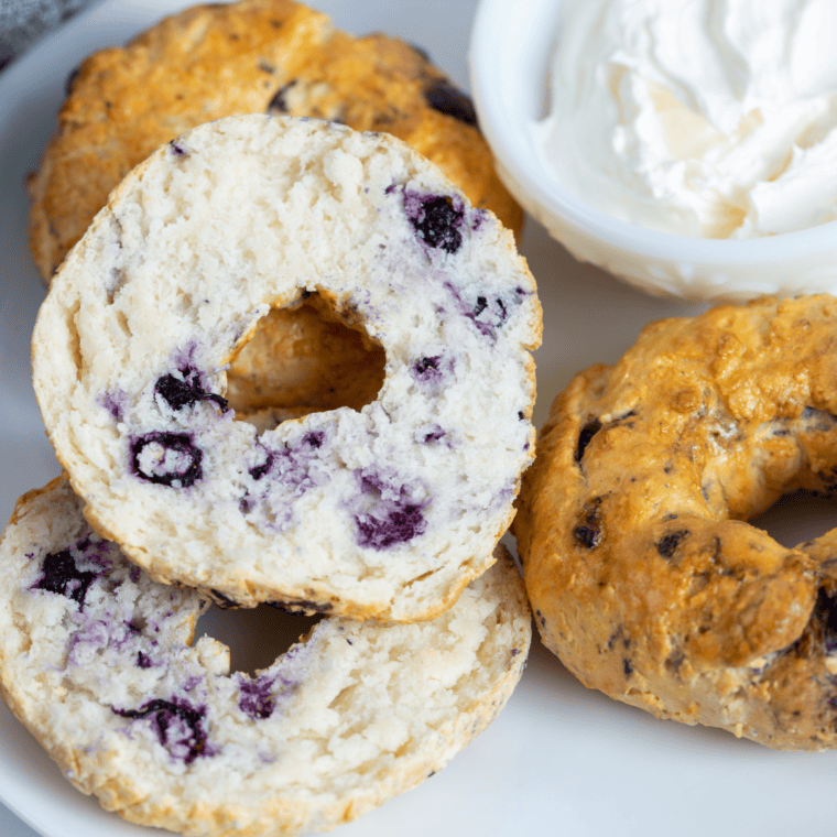 Bagel dough studded with blueberries and air fried until crisp outside, soft inside. The blueberries infuse flavor and sweetness. A light glaze or cream cheese makes a nice finish. It’s an experimental treat.