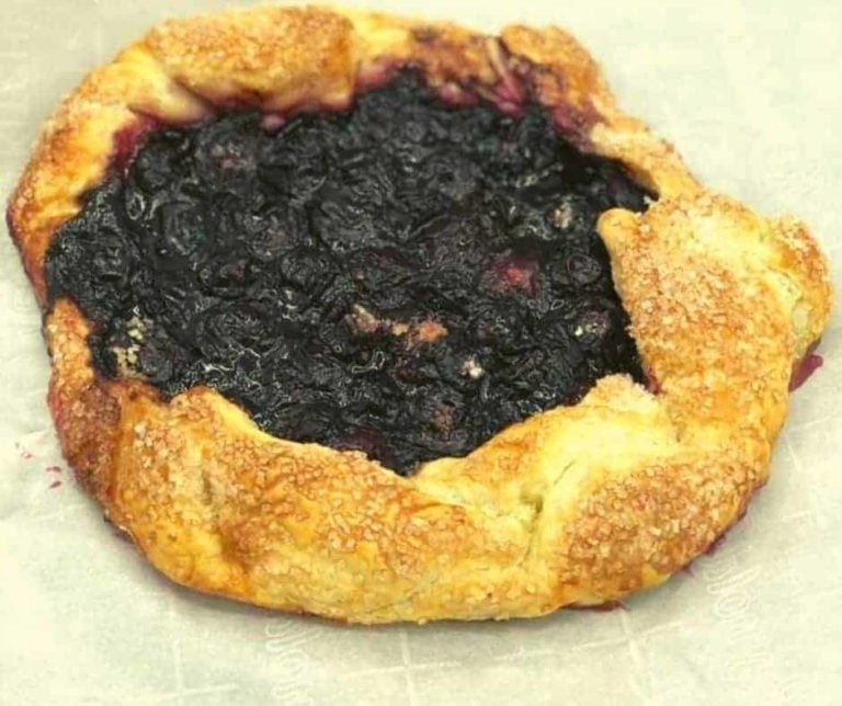 A freeform tart where dough is folded over blueberries. The air fryer bakes the crust crisp and fills it just enough. The edges become golden brown. This is a rustic presentation of berry pie.