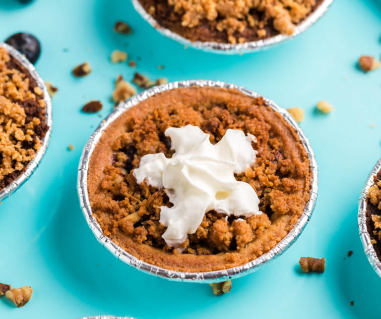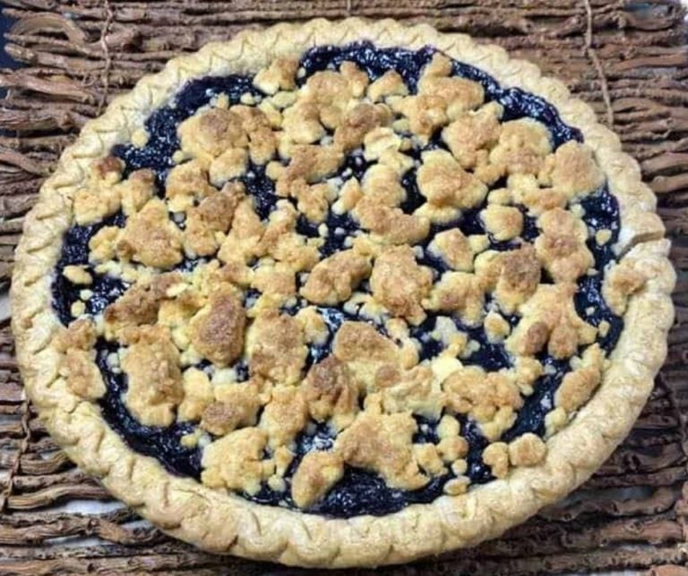 A pie with a streusel or crumble topping over blueberry filling. The air fryer crisps the topping while letting the fruit bubble beneath. The crumble gives great texture contrast. Serve with whipped cream or ice cream.