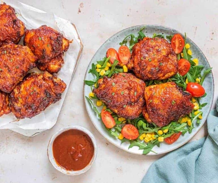 Thighs roasted with a peach glaze that caramelizes in the air fryer. The skin crisps while the inside stays tender. Sweet and savory in every bite. Good with rice or greens.