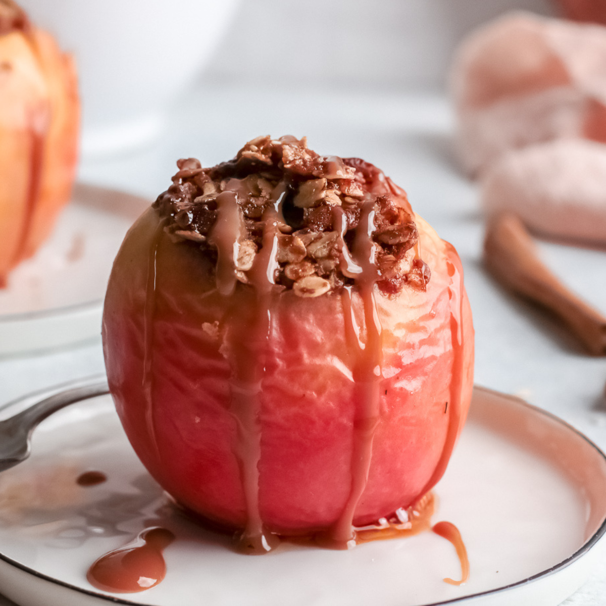 Baked apples filled with a sweet caramel sauce and oats is a dessert that’s worthy of any fall occasion or dinner.
