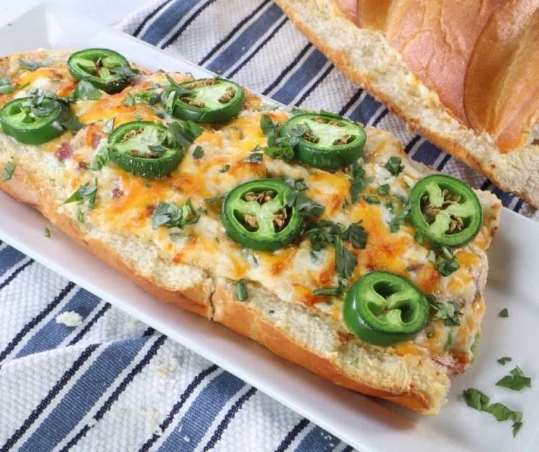 This stuffed bread is filled with cream cheese, jalapenos, and crispy bacon. It bakes into a golden loaf that’s spicy, creamy, and savory all in one. Each slice delivers bold flavor. Serve warm for the best texture.