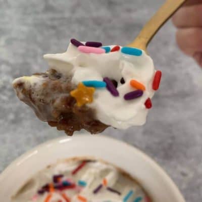 This is one of the most incredible air fryer hacks, and if you have been reading my website for a while, you know I love an excellent air frying hack. Today, I present to you Air Fryer Cookie Mug Cake!