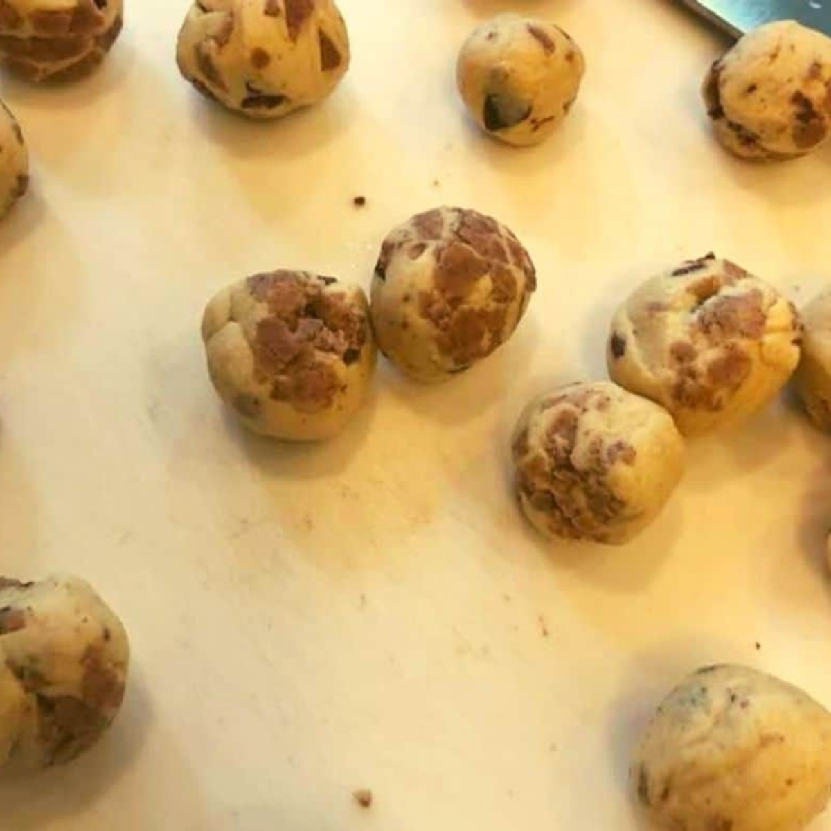 Step Two: Roll them tightly into balls, and the tighter and firmer you make them, the less chance they will unroll during baking.