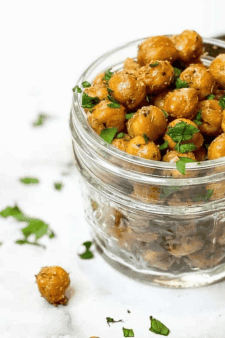 How long do these roasted chickpeas stay crispy? These roasted chickpeas are best enjoyed on the same day they are made for the ultimate crispiness. However, you can store any leftovers in an airtight container at room temperature for a day or two. Keep in mind that they may lose some of their initial crunchiness over time.