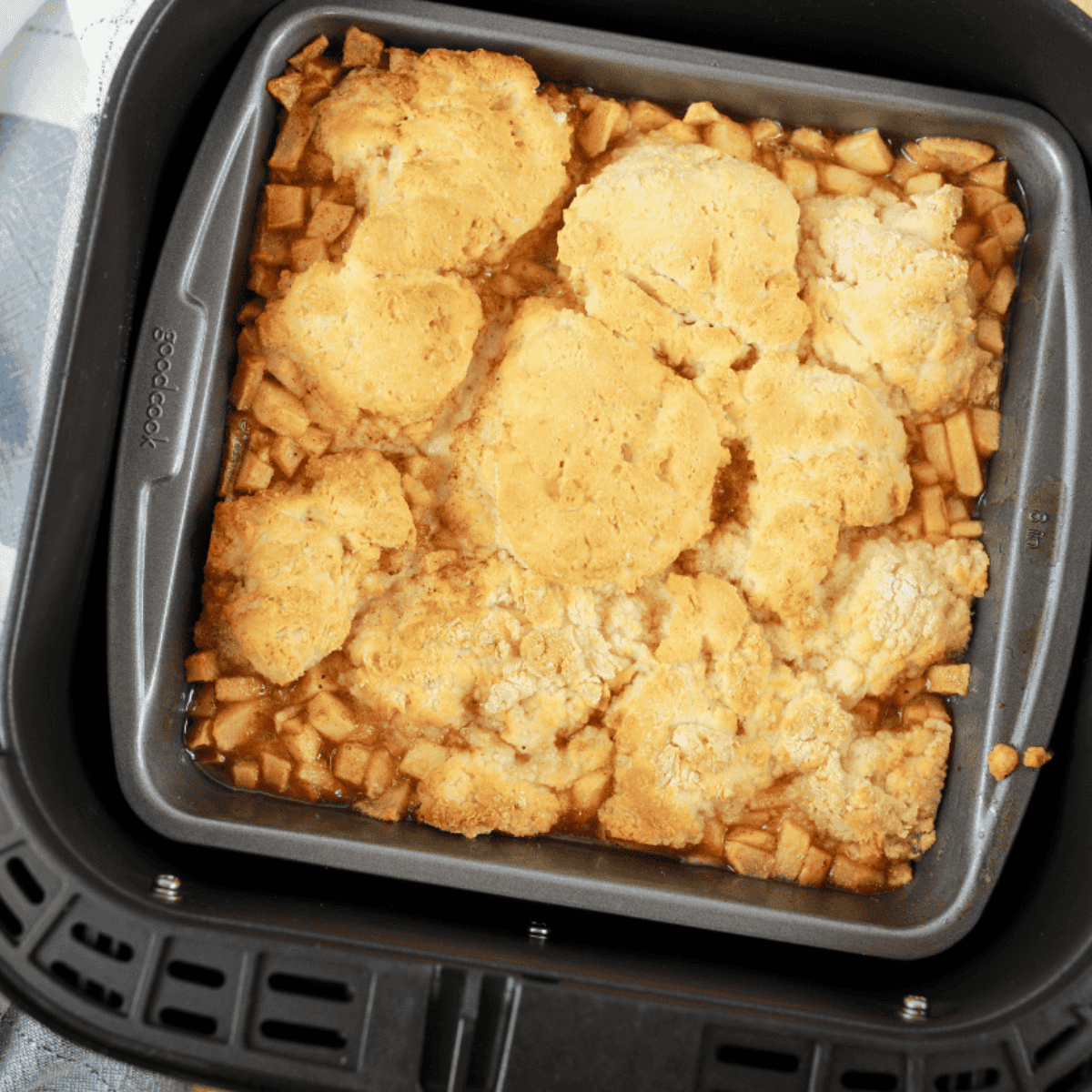 Step 4: Preheat the air fryer to 320°F and cook the cobbler for 12–15 minutes, until golden brown and fully set.