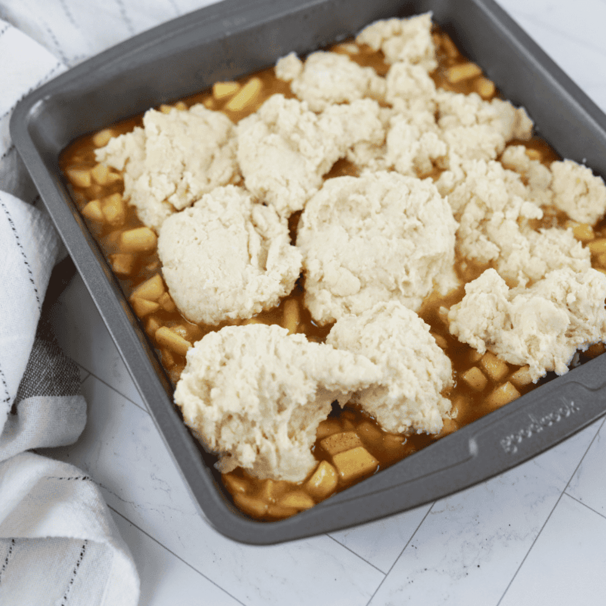 What apples work best for cobbler? Firm apples like Granny Smith, Honeycrisp, or Fuji hold their shape well. They also balance sweetness with a slight tart flavor.