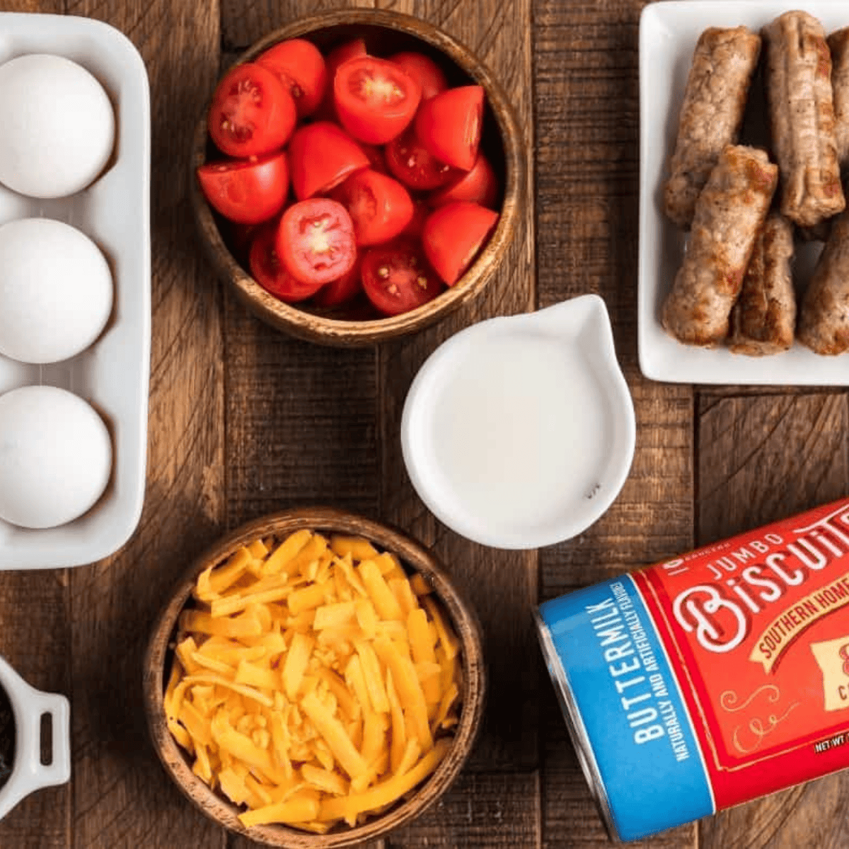 - Sausage Links: Savory breakfast sausage, cooked and sliced for filling.