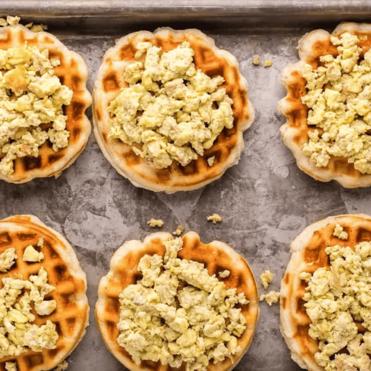 Can I prep these ahead of time? You can assemble the waffles and toppings ahead, then refrigerate. Cook in the air fryer just before serving for best results.