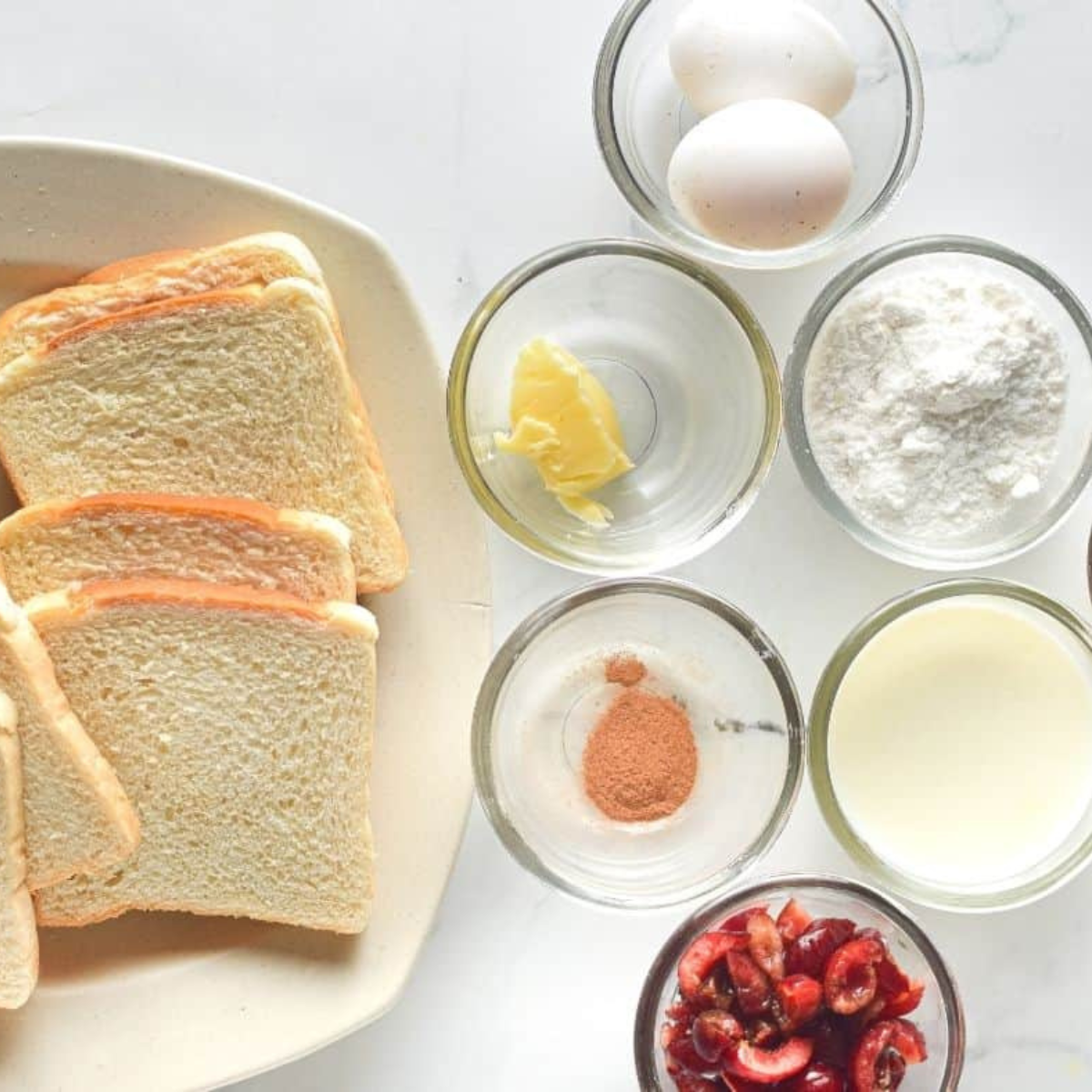 - Bread: Thick slices sturdy enough to hold sweet filling