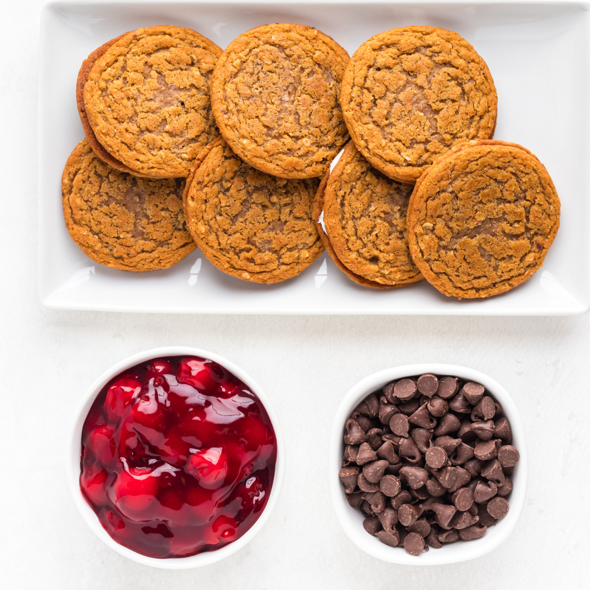- Add your 4 Little Debbie Pies Oatmeal1 cup cherry pie filling on top, and sprinkle 2 tablespoons chocolate chips on top.