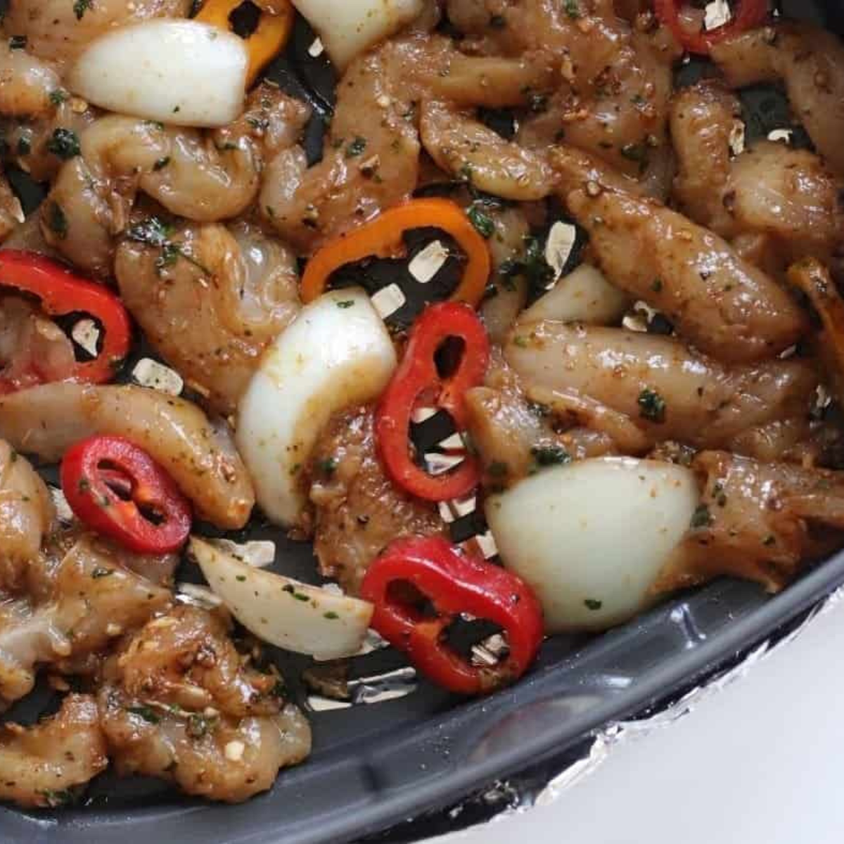 - Cut chicken and vegetables evenly: Ensures even cooking in the air fryer.