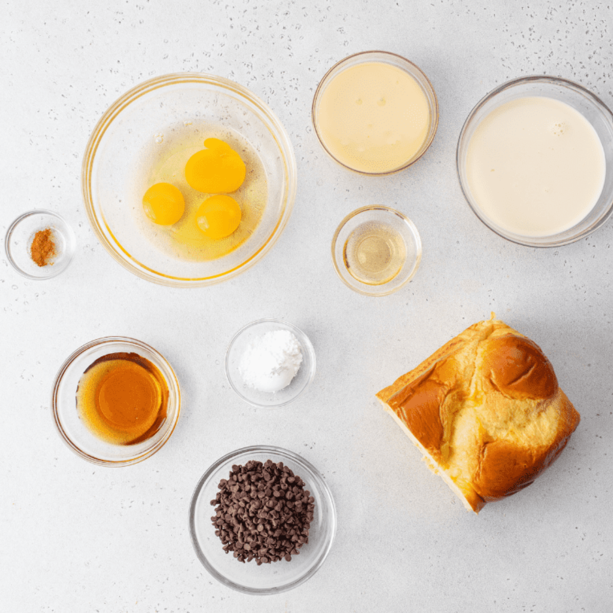 - Brioche bread: Soft, rich bread cut into cubes for soaking custard.