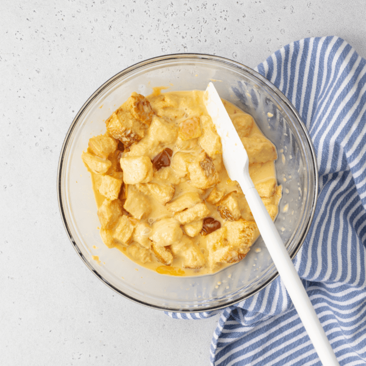 - Use day-old bread: Slightly stale bread soaks up the custard without falling apart.