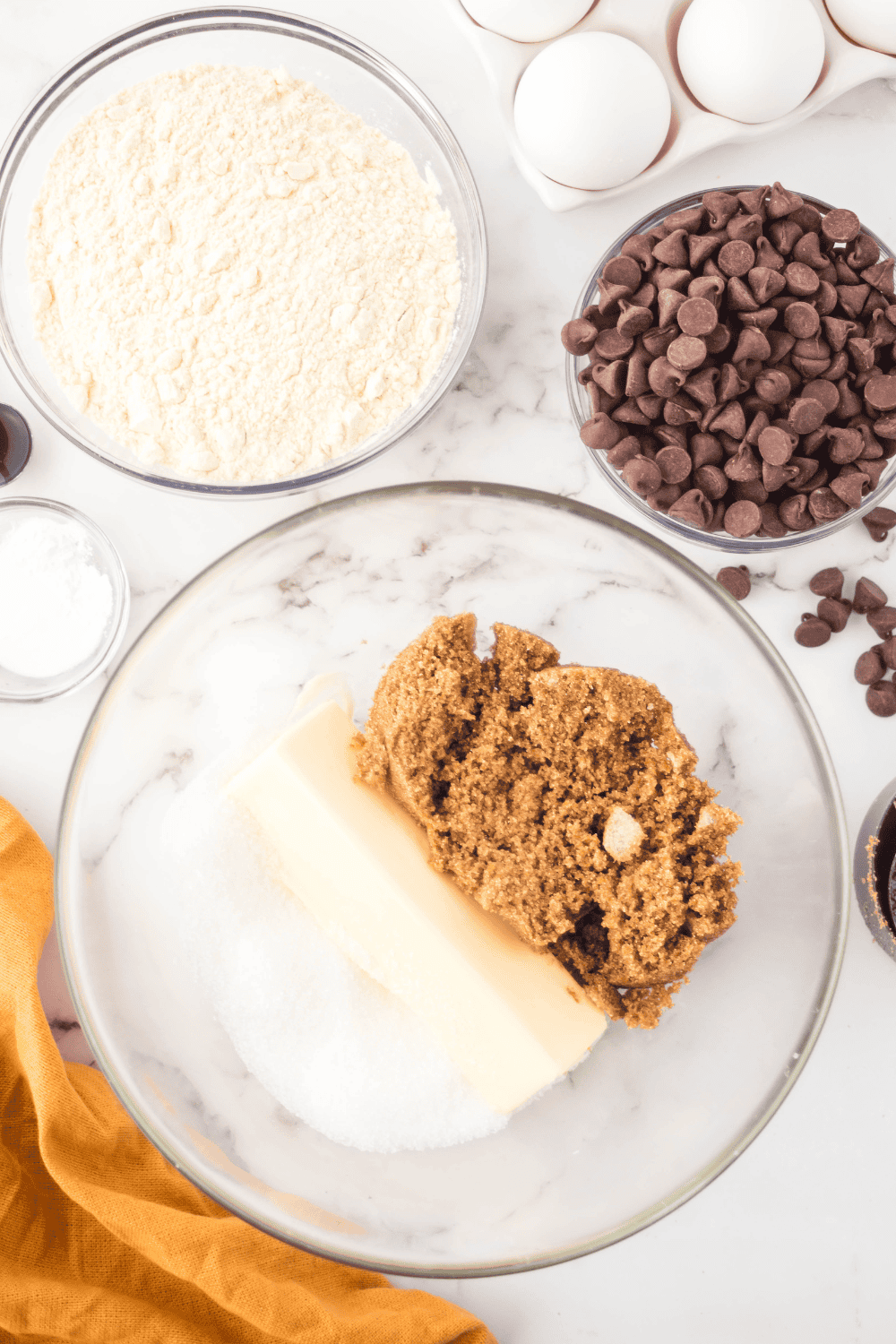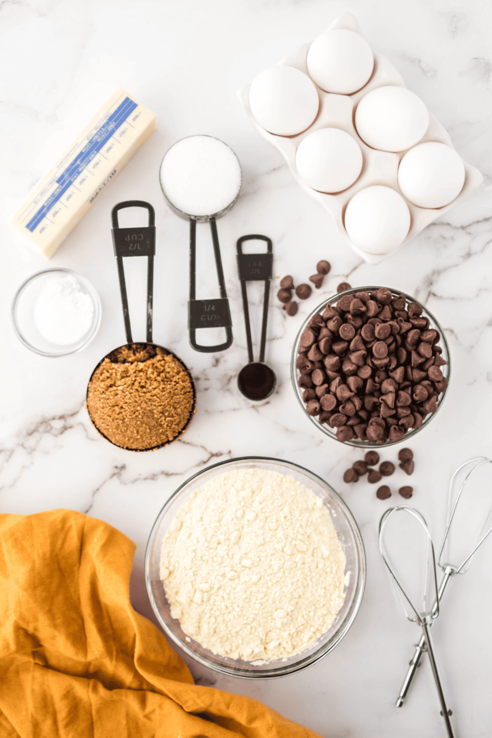 - Flour — Because this recipe creates an air fryer cookie with an extremely gooey center, the type of flour you choose to use makes a big difference. We usually stick with all-purpose flour, but feel free to use whole wheat or gluten-free, understanding that the texture will vary.
