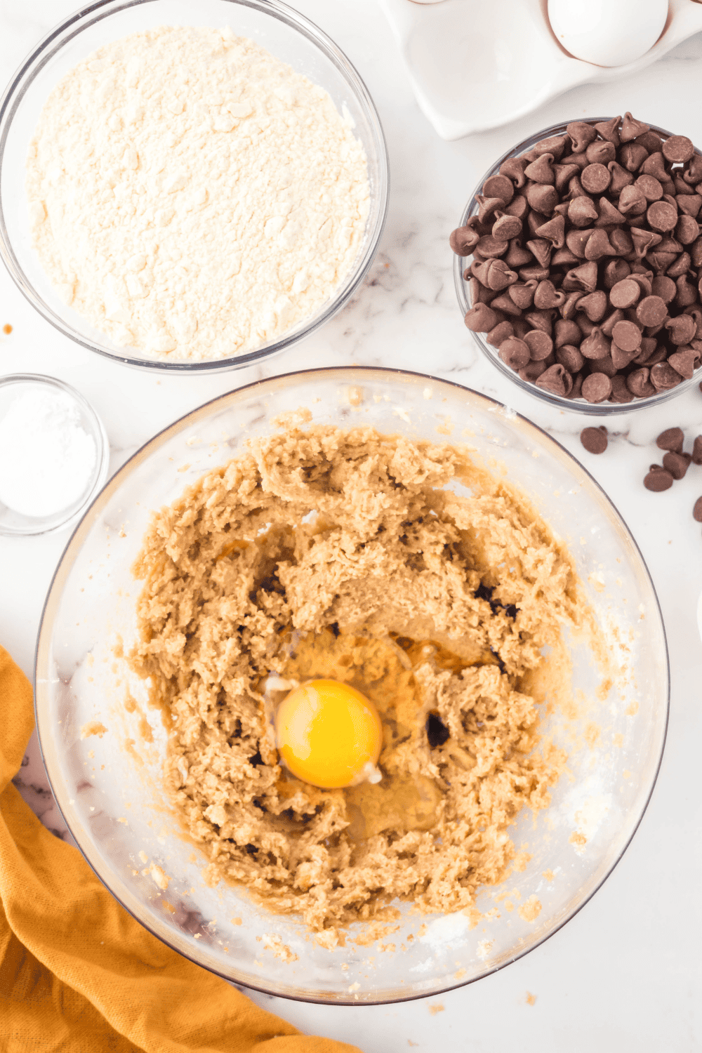 Once your butter mixture is creamy, add in your egg and vanilla and beat again until smooth.