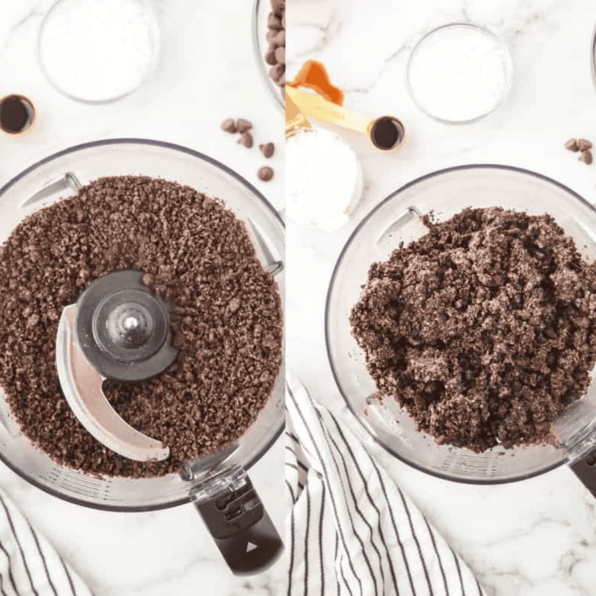 - Start by adding your 25 Oreo Cookies to a food processor. Pulse until at the desired consistency. If you do not have a food processor, I usually add my Oreos to a Ziploc bag and use a rolling pin to crush them.