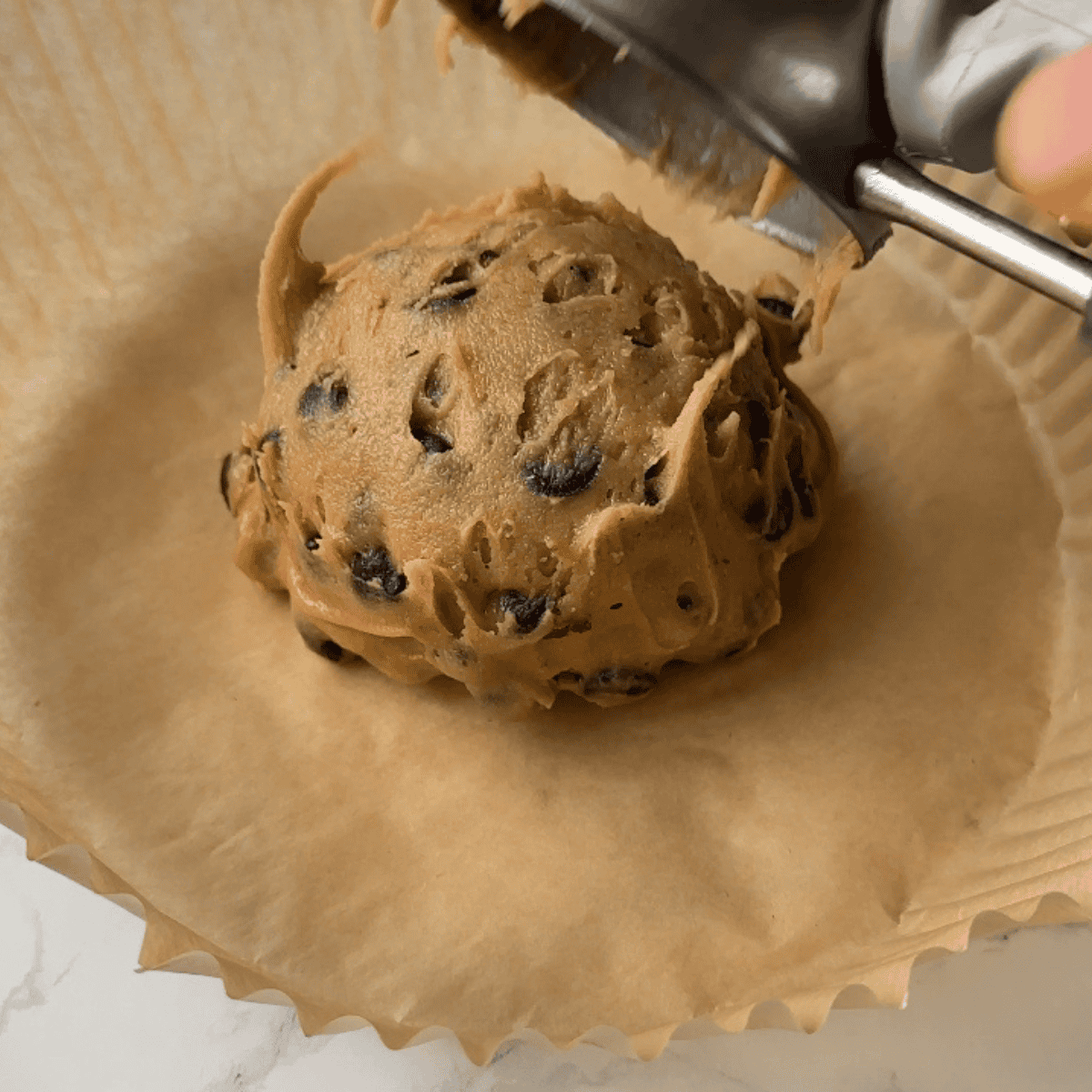 Step 3: Form the dough into a thick cookie and place it on parchment paper or in an air fryer-safe ramekin. Gently flatten slightly.