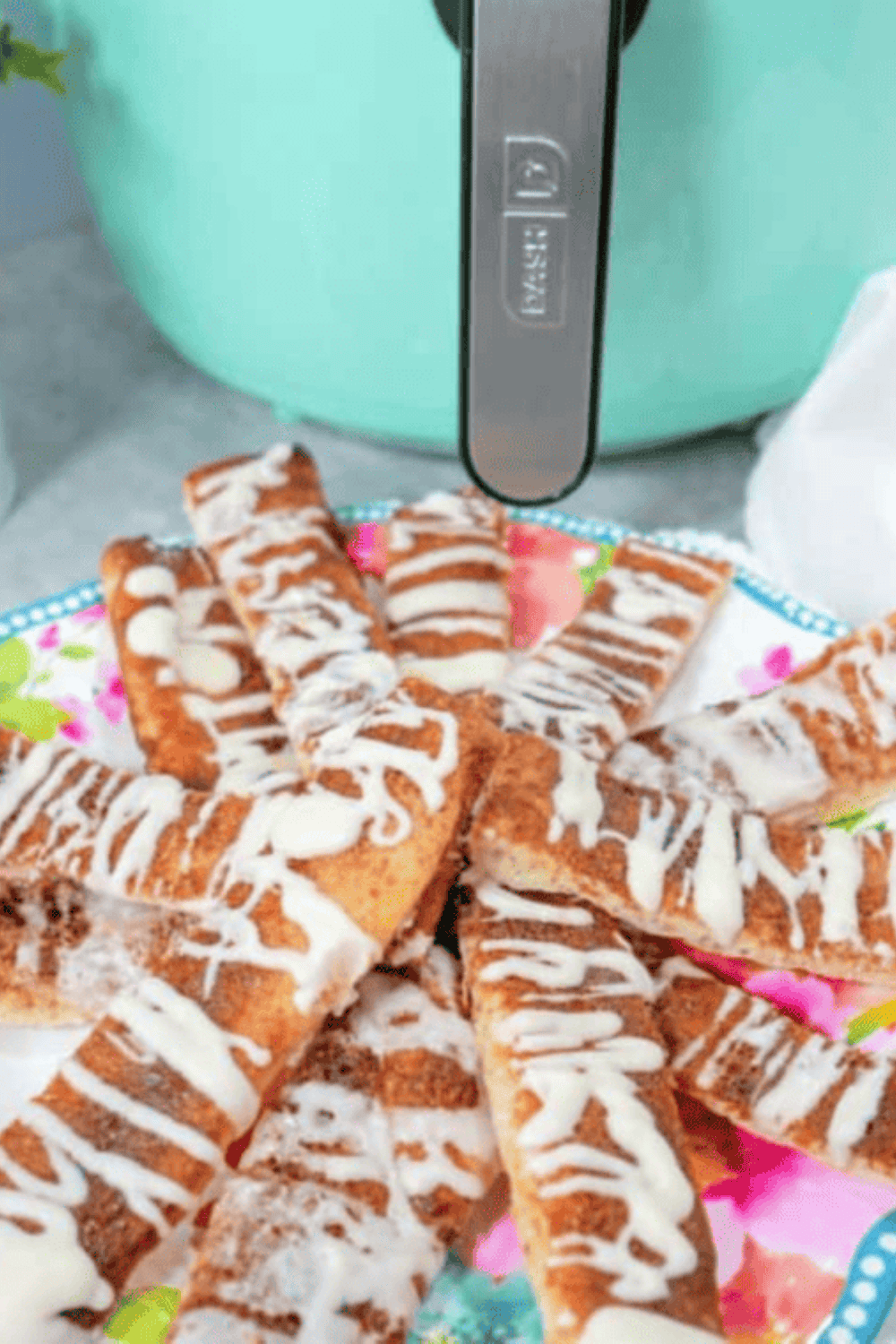 Drizzle with Glaze: Once the cinnamon sticks are done, remove them from the air fryer and let them cool for a minute or two. Drizzle the glaze over the warm cinnamon sticks for added sweetness and flavor.
