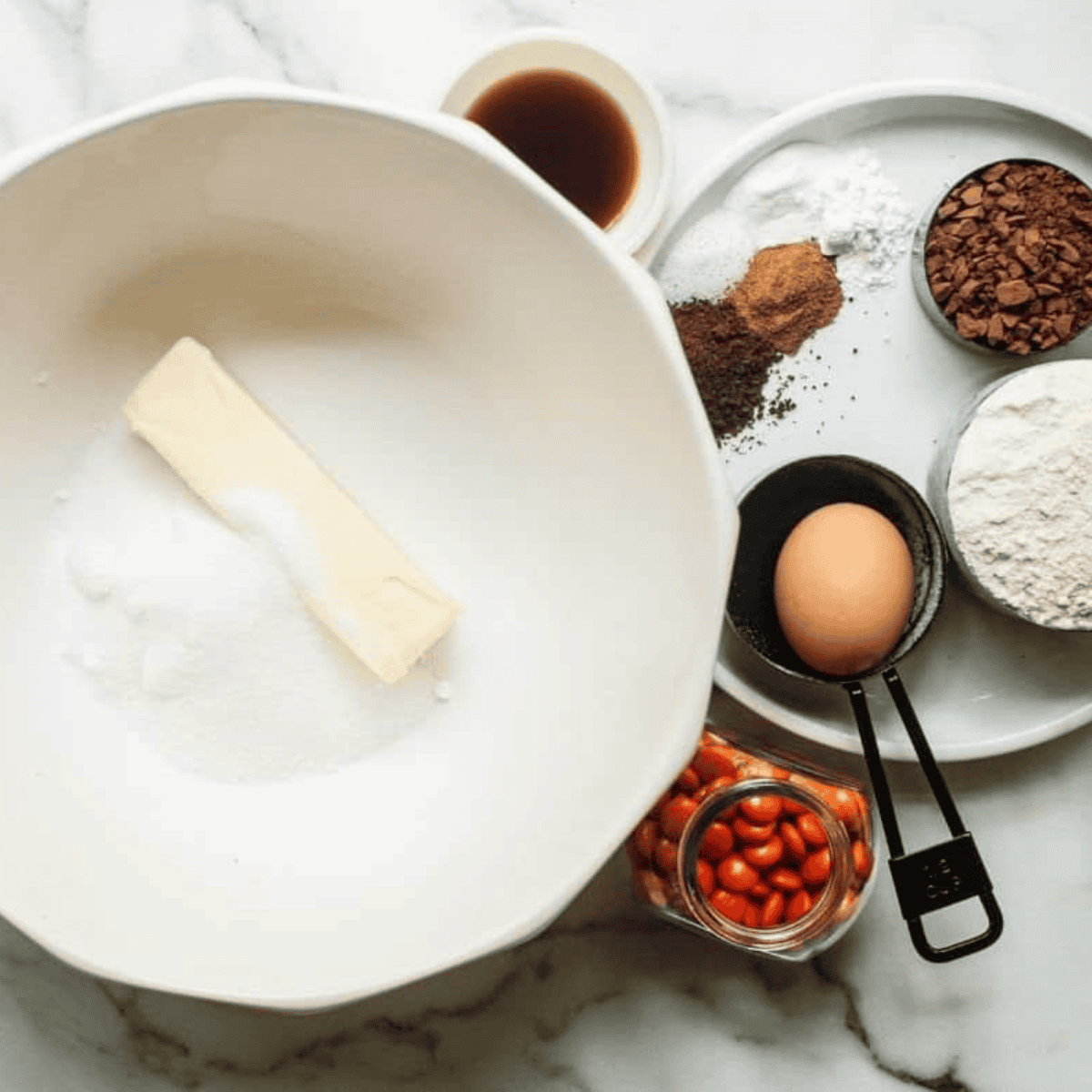 - Mix ⅓ cup dark cocoa powder, 1 tablespoon dry instant coffee, ¼ teaspoon cinnamon, ¼ teaspoon salt, ½ teaspoon baking powder, and ½ teaspoon baking soda. Slowly incorporate the 1 cup all-purpose flour until everything is fully combined.