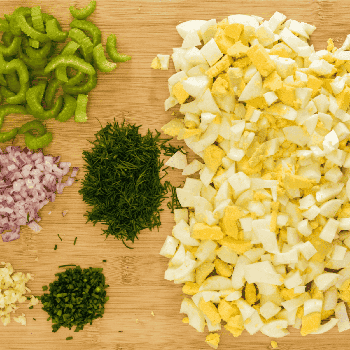 • Chop eggs evenly to get a smooth, creamy filling without large chunks.