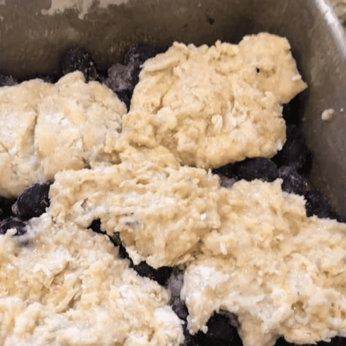 - Drop batter unevenly over the blueberries; it will spread and create a rustic, golden topping.