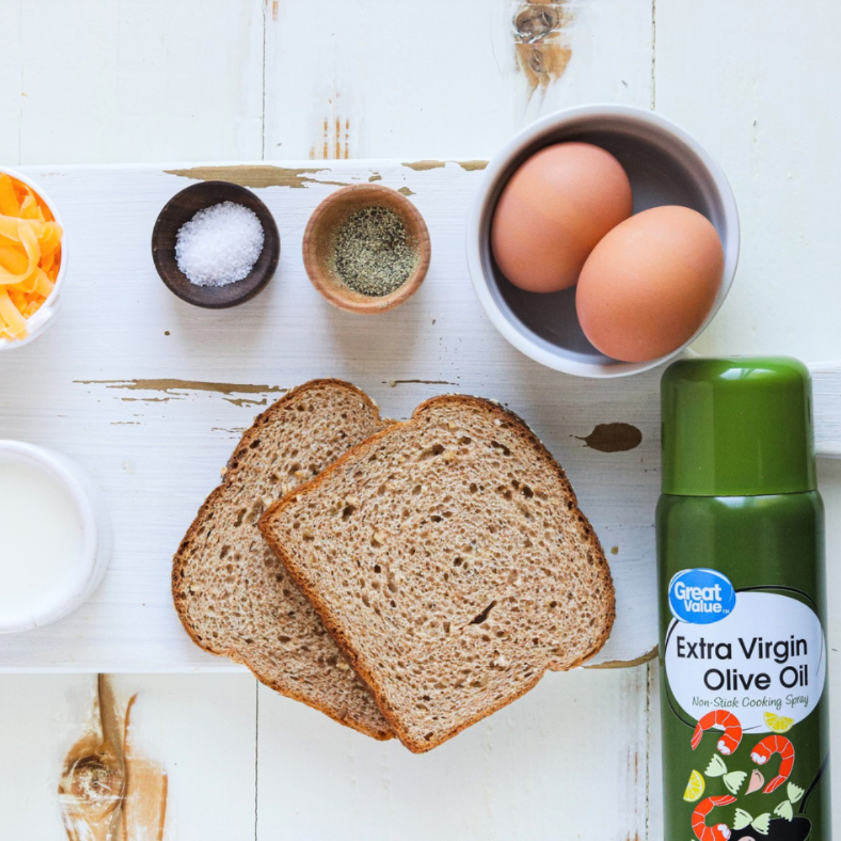 - Cheddar cheese, shredded: Melts into savory pockets throughout the egg toast