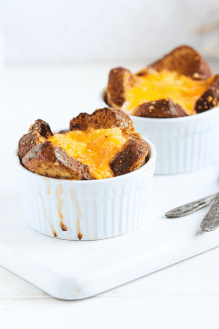 - Place the battered piece of toast into the greased ramekin.