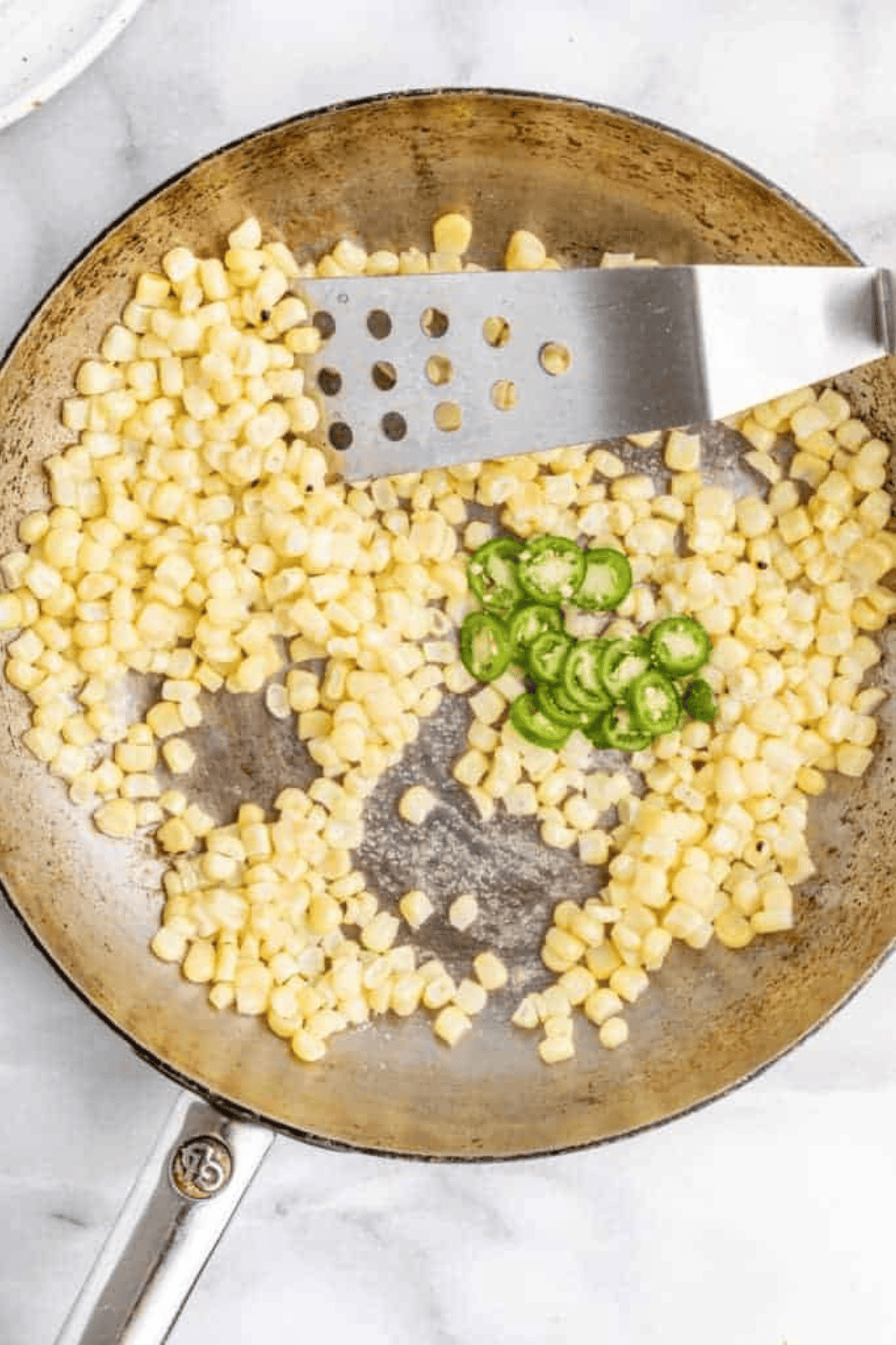 Step 1: In a medium skillet over high heat, melt the butter, then add the corn and cook undisturbed for 2–3 minutes until slightly toasted.