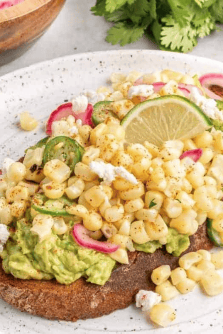 Topped with smoky Mexican street corn, melted cheese, fresh lime, and a hint of spice, it’s a snack, breakfast, or brunch option that’s quick, flavorful, and totally irresistible.