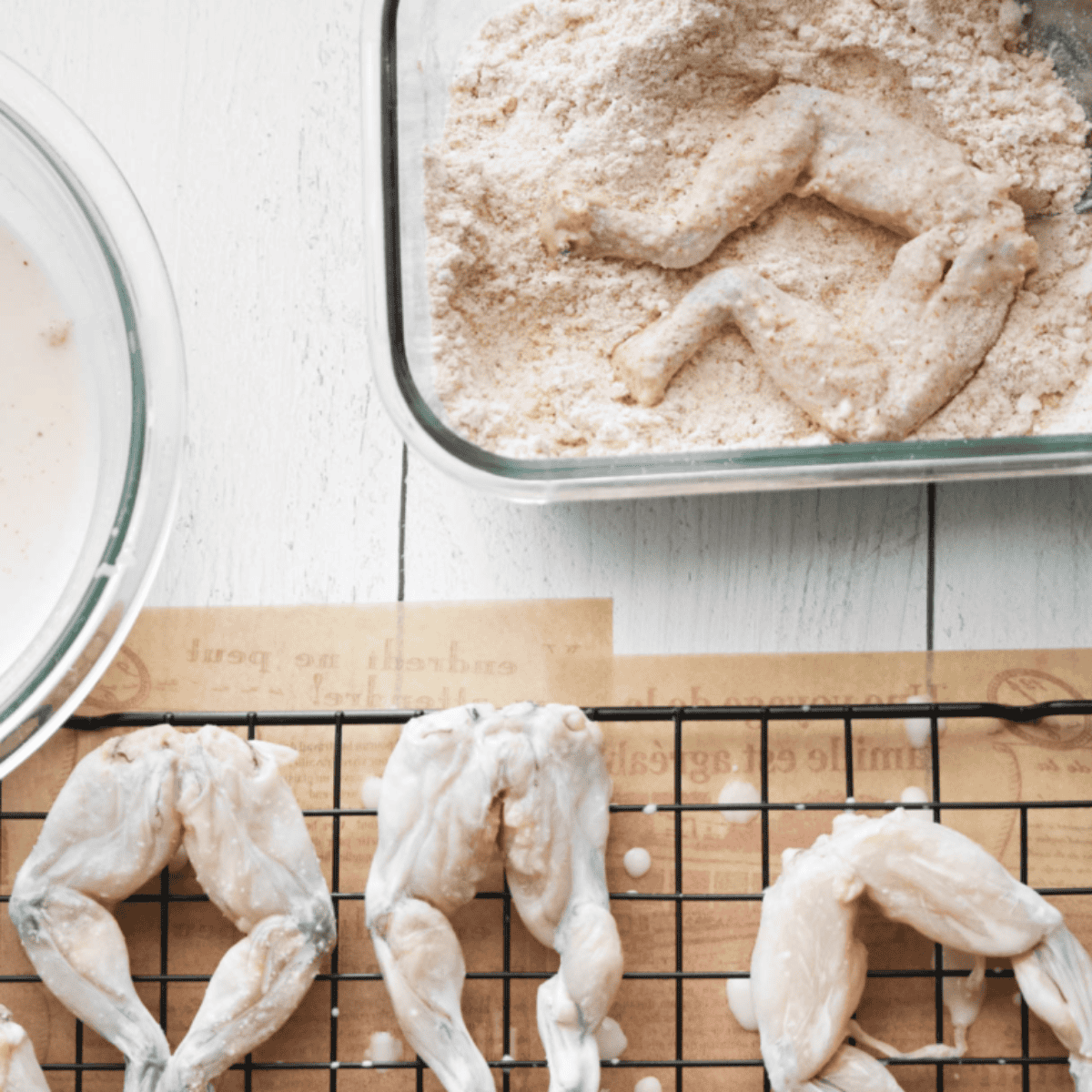 - Buttermilk or milk: Soaks frog legs, tenderizing and adding mild tang.