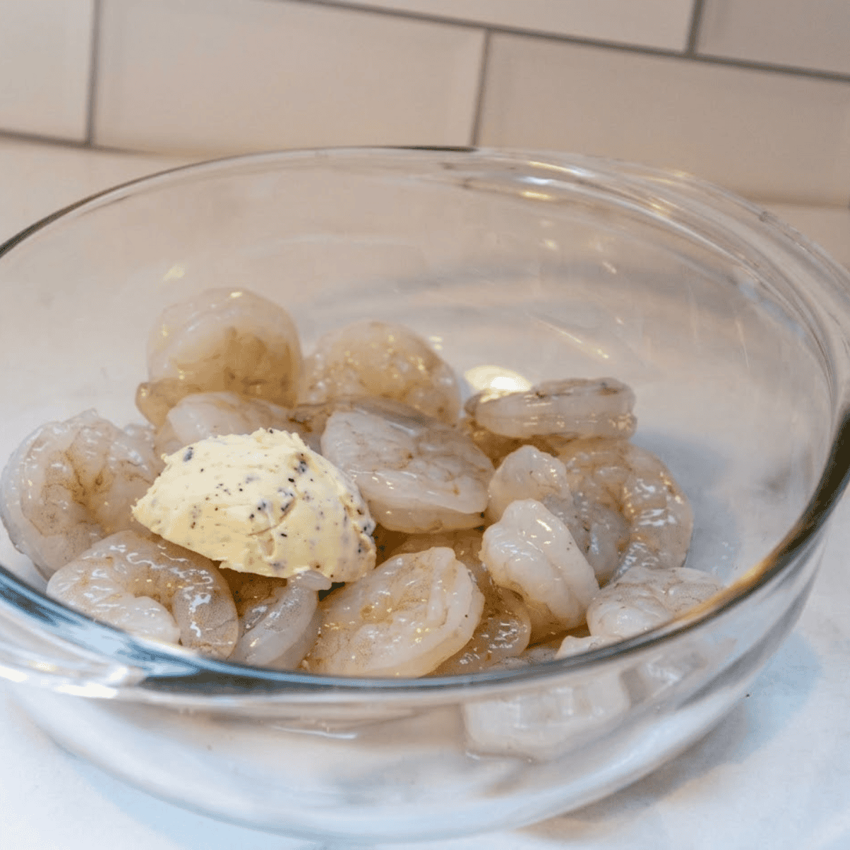 Step One: In a small bowl, combine the shrimp with olive oil, minced garlic, butter, salt, and pepper, tossing until each piece is evenly coated.