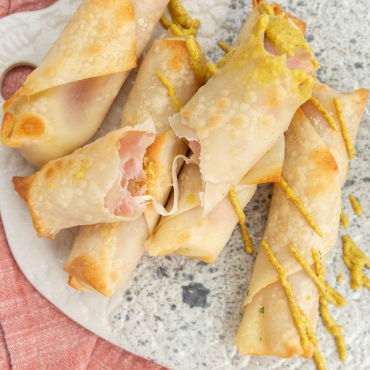 - Don’t Overstuff: Be careful not to overload the wonton with ham and cheese. Too much filling may cause the wrapper to burst open during cooking. A mozzarella stick and a small slice of ham are perfect!