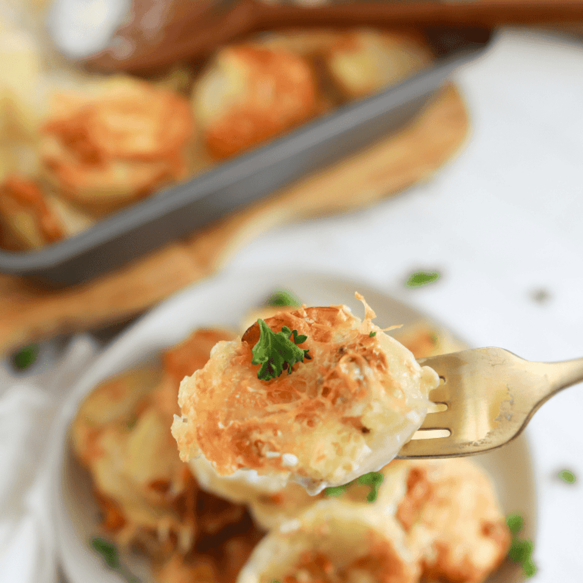 Can I use fresh potatoes instead of pre-sliced? Yes! Peel and thinly slice fresh potatoes, then soak in cold water for 10–15 minutes to remove excess starch. This helps them cook evenly and prevents a soggy casserole.