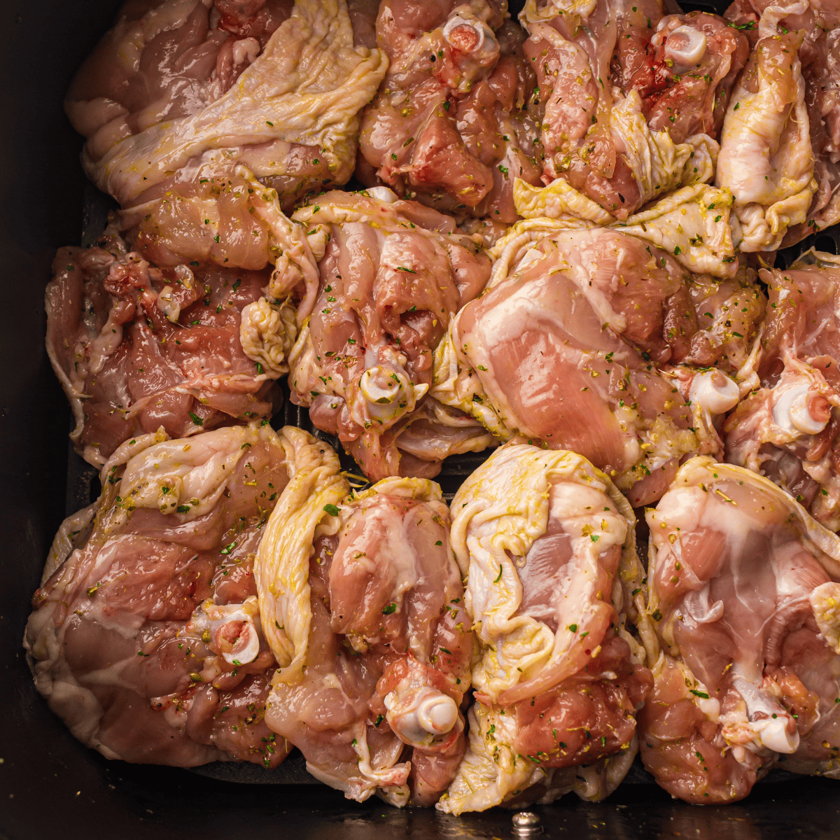 - Single layer cooking: Arrange thighs in one layer in the air fryer basket for even crisping.
