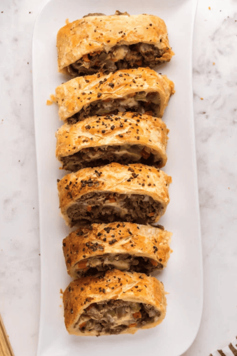 How do I know when it’s done? The pastry should be golden brown and crisp, and the beef should be heated through.