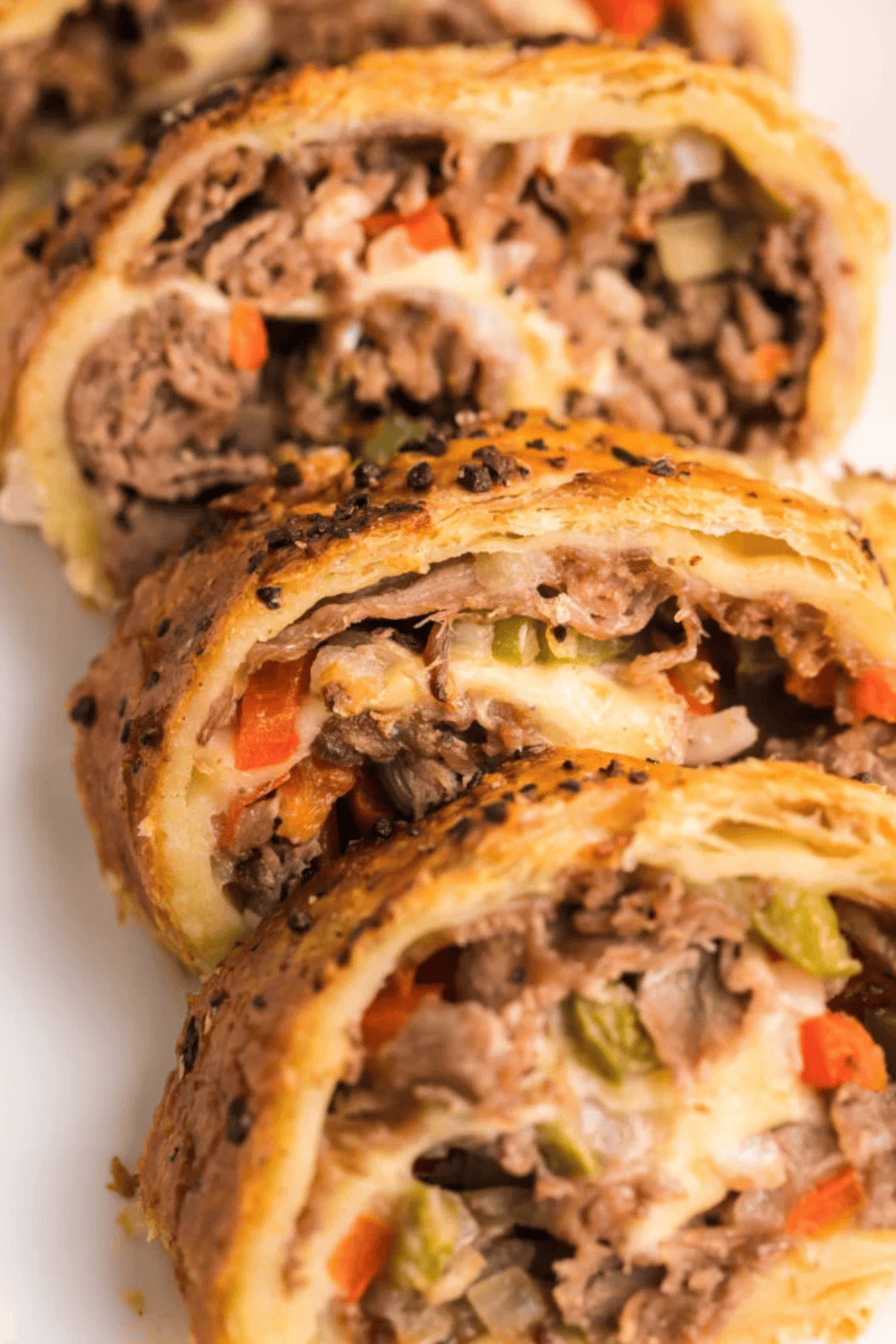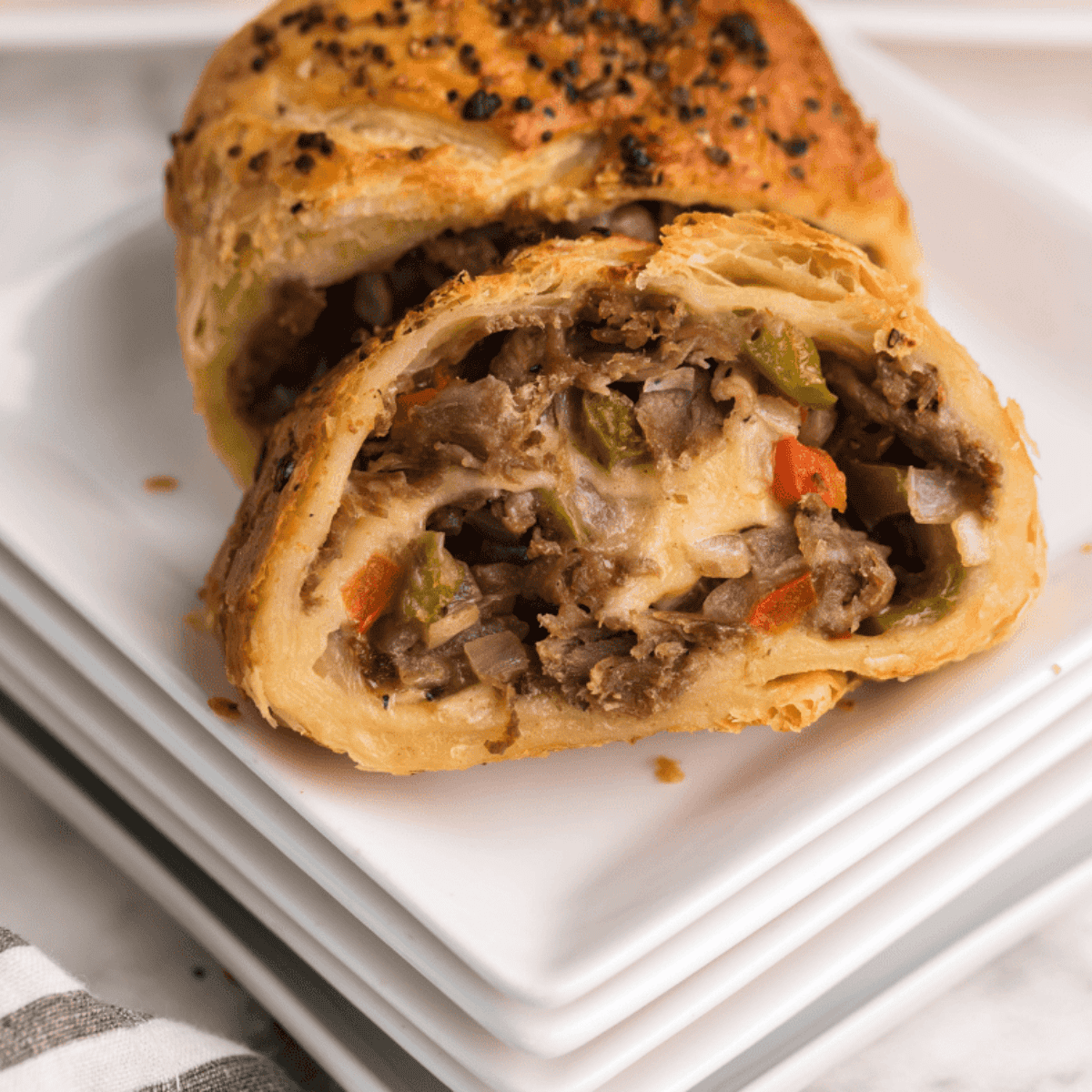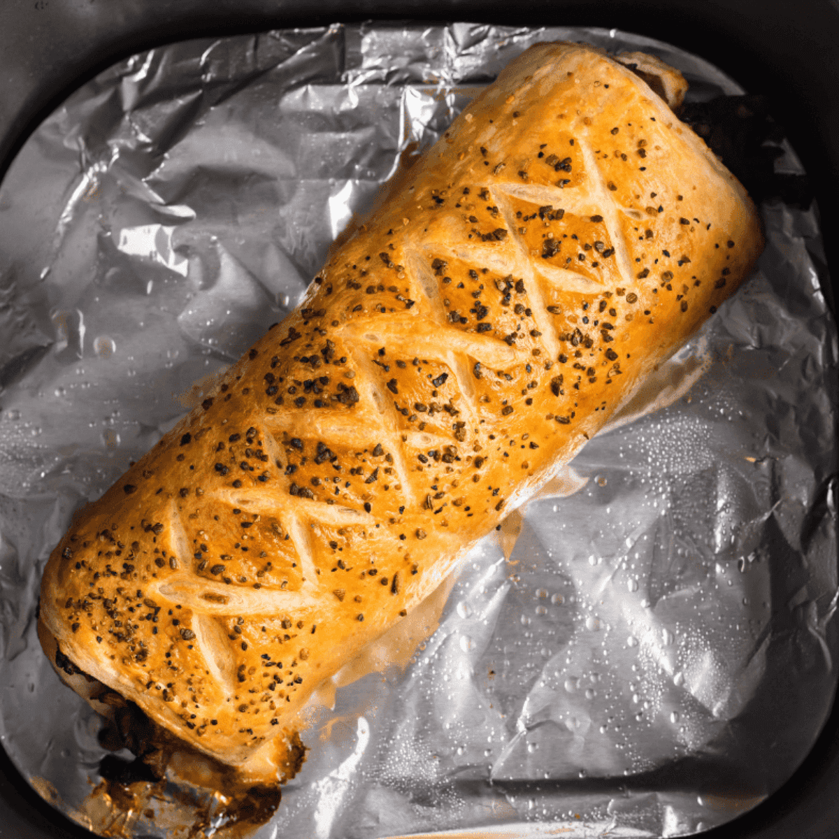Tender, seasoned Italian beef is layered with gooey melted cheese and wrapped in golden, flaky dough, then cooked to perfection in the air fryer.