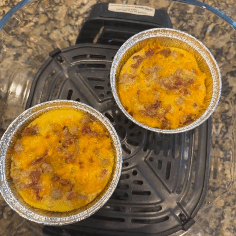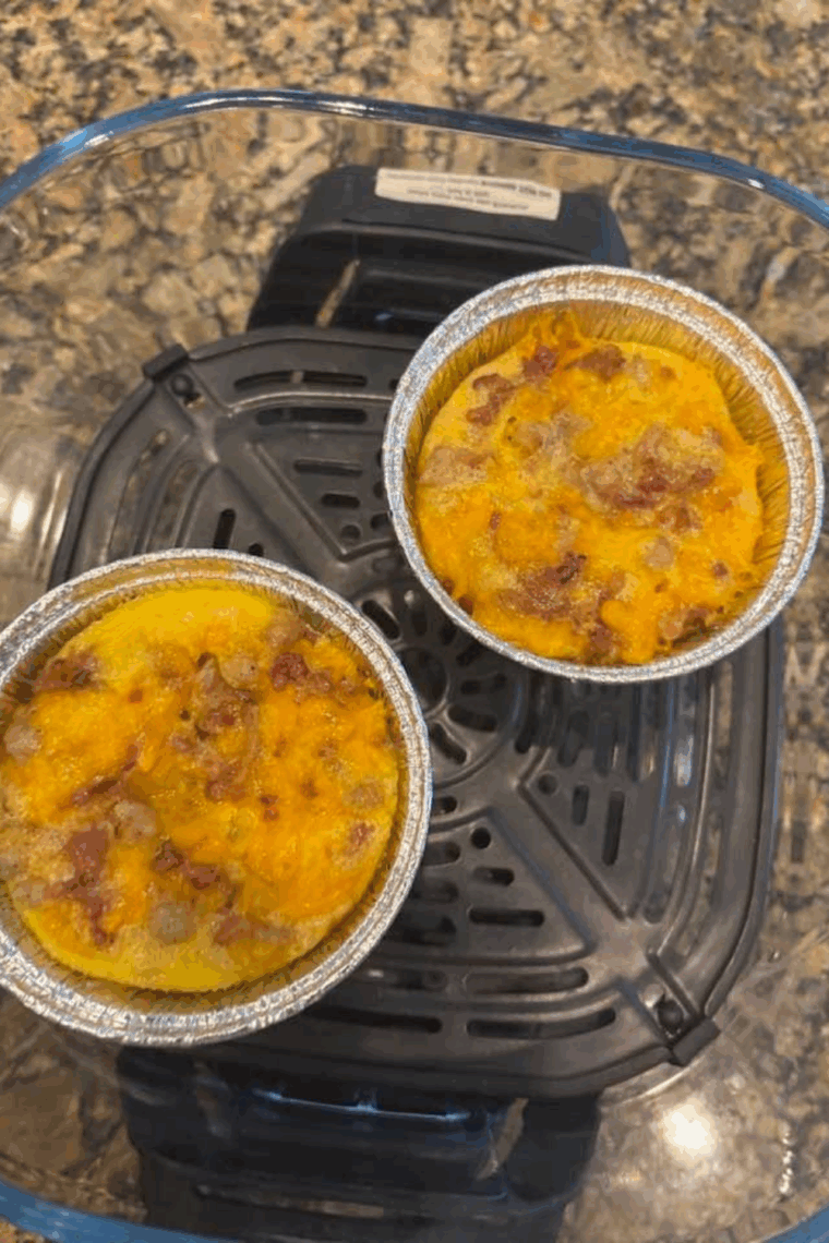 - Pour the mixture into the prepared basket and cook for 20–25 minutes, or until the eggs are fully set and the top is golden brown.