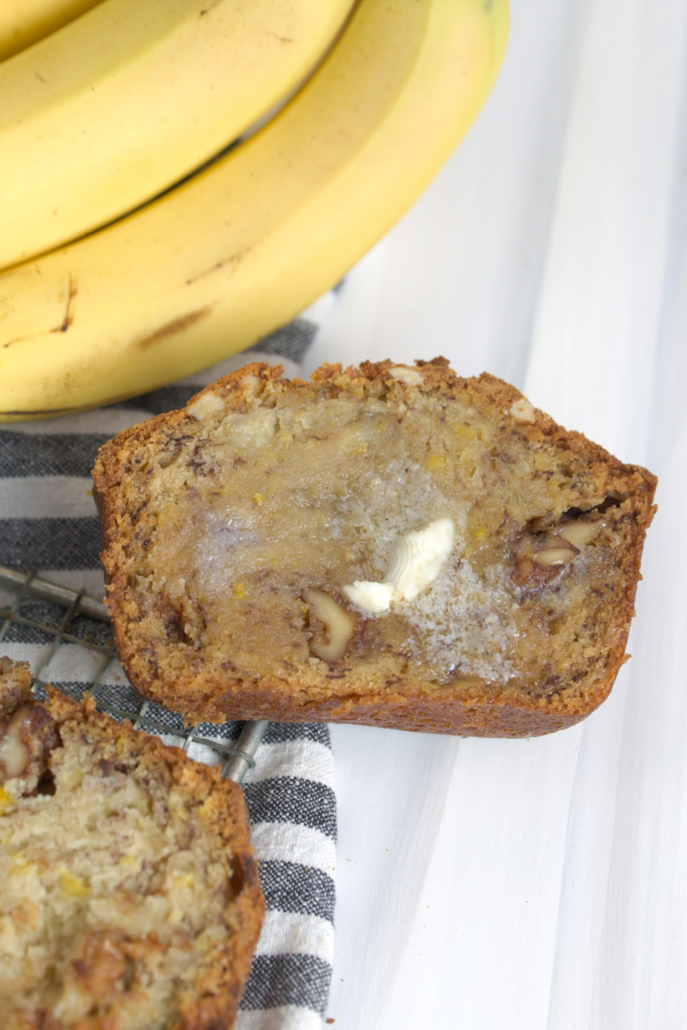 Can I freeze the banana bread? Yes, wrap the whole loaf or individual slices tightly in plastic wrap and a freezer-safe bag. Freeze up to 3 months. Thaw at room temperature or reheat in the oven or microwave.