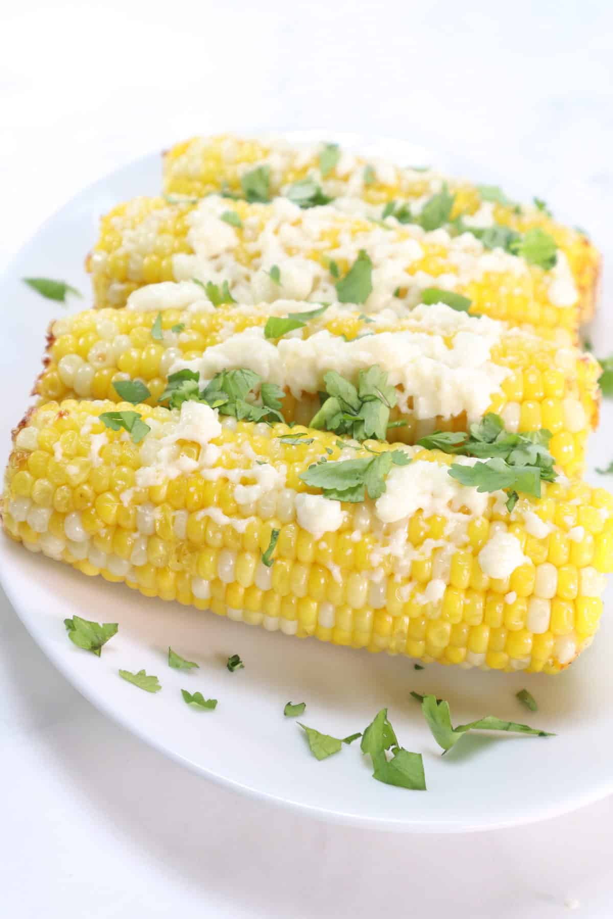 How do I store leftover Mexican street corn? Store leftover corn in an airtight container in the refrigerator for up to 2 days. Reheat in the air fryer or microwave before serving.
