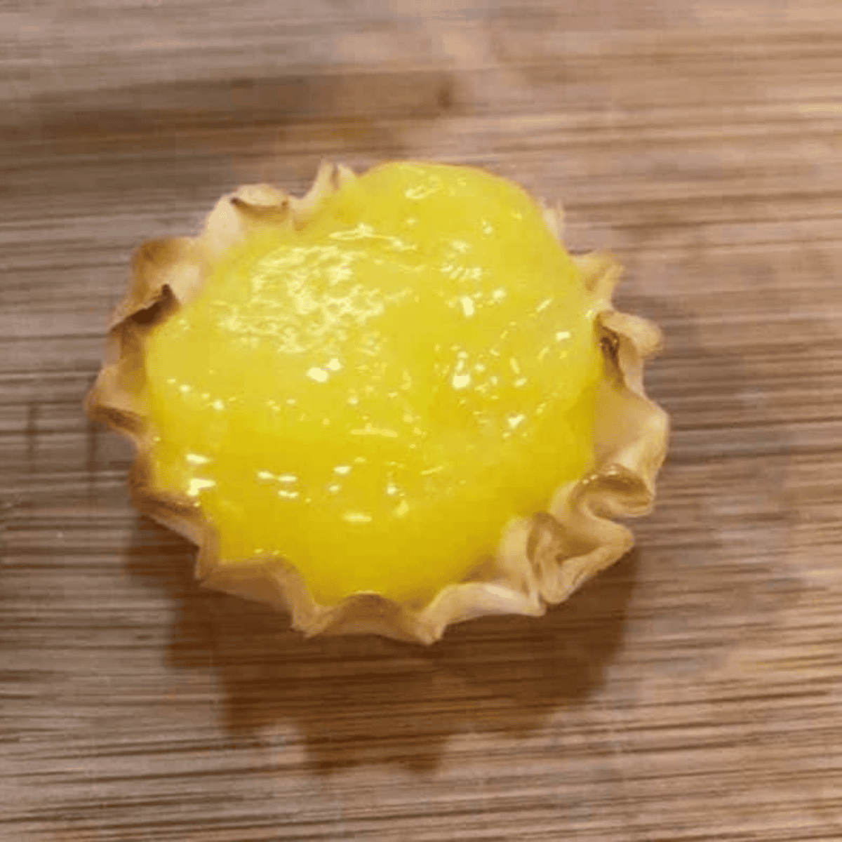 Step One: Add the lemon pie filling to the top of the phyllo shell.