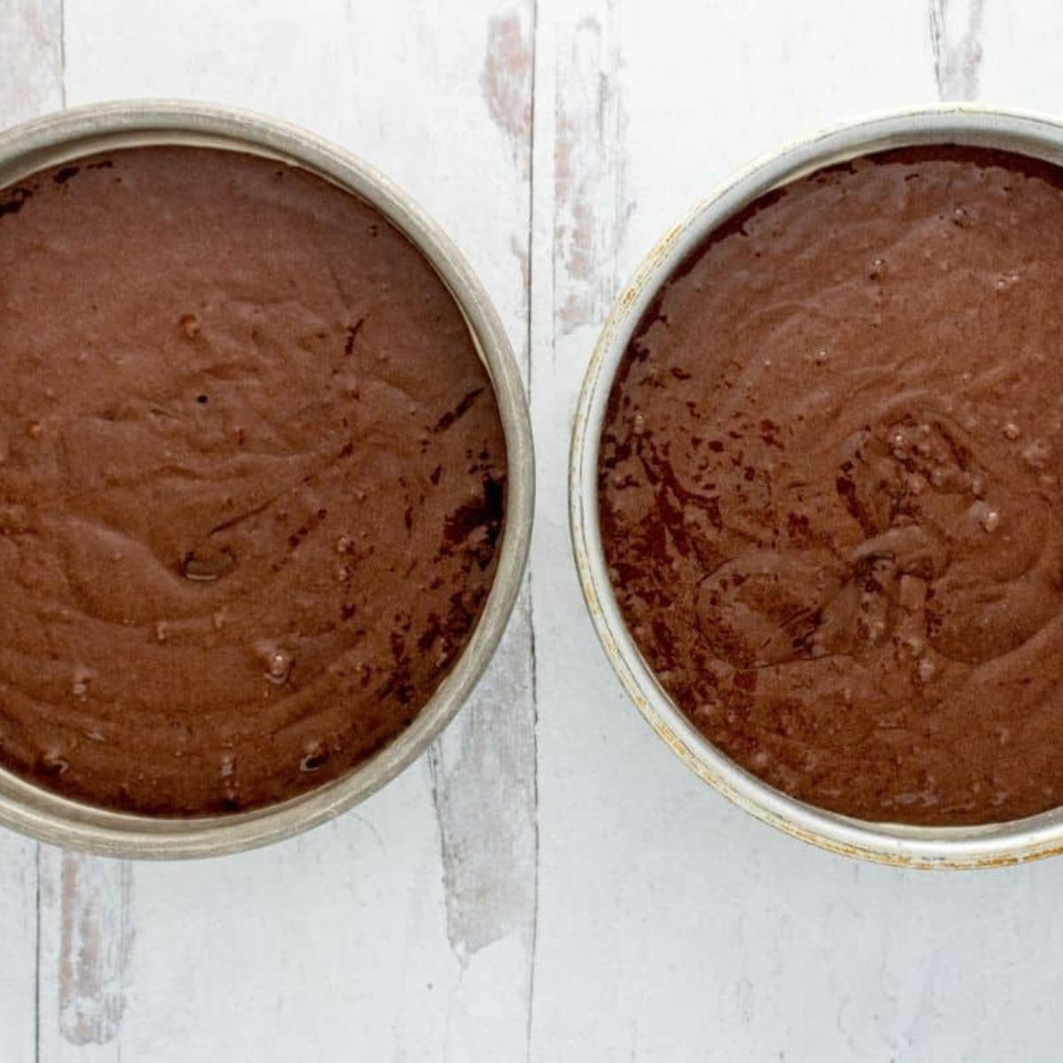 Step One: Lightly coat two 8-inch round cake pans with non-stick spray or cake release. Combine all ingredients in a bowl and mix using a hand mixer or stand mixer until smooth.