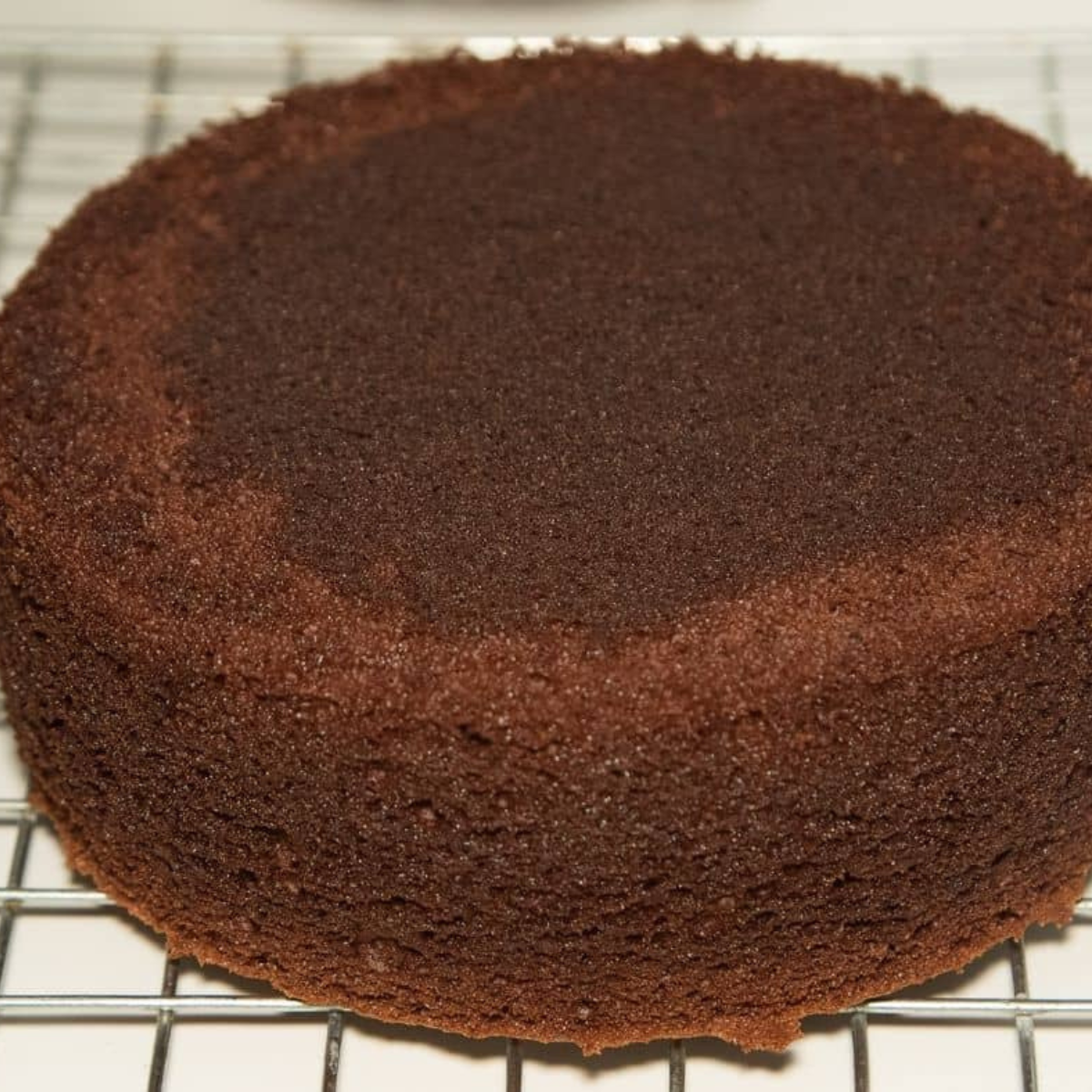 Step Three: Take the cakes out of the air fryer and allow them to cool for at least one hour. Once slightly firm, trim the rounded “dome” from the top with a serrated knife, then wrap each cake tightly in plastic wrap and freeze for a minimum of 2 hours.