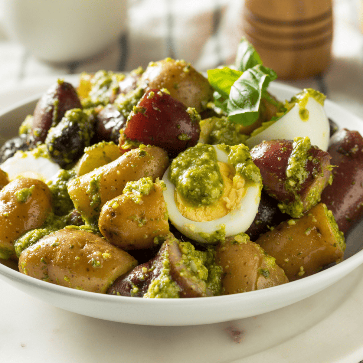 Crispy on the outside and tender on the inside, each bite is coated in fresh, vibrant pesto for a burst of herby goodness.